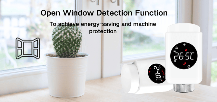 This TRV01-ZB heating thermostat with open window detection function to timely alert of abnormal environmental conditions to adjust own working state in order to save energy.