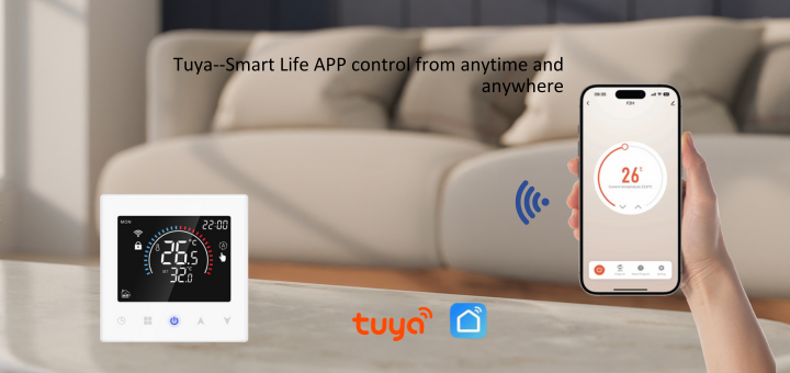Control your floor heating thermostat remotely using the Tuya or Smart Life App, allowing you to manage your home’s heating anytime and anywhere.
