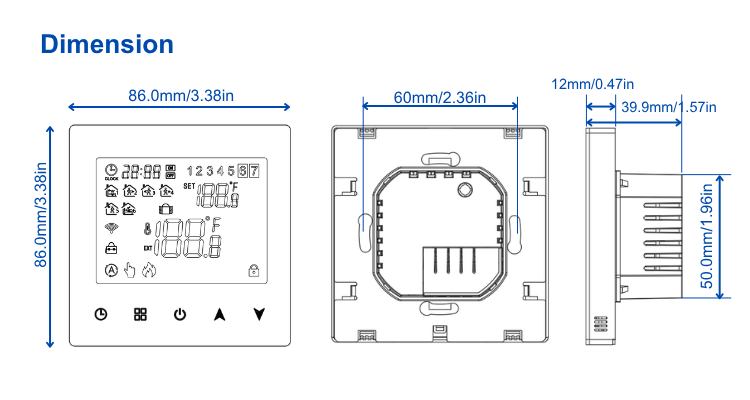 Load Current 16A(electric heating); 3A(water heating/ gas boiler)