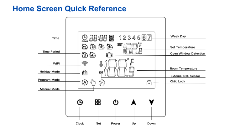 Mode: Heating/Cooling/Ventilation Mode, Holiday Mode, Open Windoe Detection